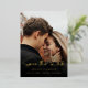 This is a modern wedding save the date card using an elegant calligraphy style font in real gold foil along with a minimalistic photo design.