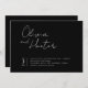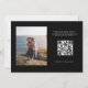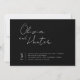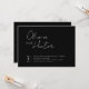 This modern wedding invitation has timeless black background and elegant modern text. The first name is a flowy hand-written script and the second name is a strong serif font, giving this invitation the perfect balance of masculine and feminine. On the back, there is a option to use a photo. Add in a QR code and rsvp online directions to make this a modern all-in-one wedding invitation.