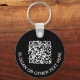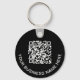 Modern black promotional keychain for your business or organisation, Add your QR code or logo and two lines of customised text, such as your company name, slogan, thank you, etc., in simple white typography.