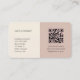 Modern and chic QR code & social media business contact card. This card features a combination of contemporary fonts, a QR code, website, contact details and social media link. The light cream and dusty rose beige backgrounds are complimentary and neutral, putting focus on the text.
