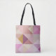 Original digital art work consisting of a quilt square look in triangles and squares of complementing colours for a modern and contemporary style. These bags are great for carrying groceries, books, bible studies, toys, or use as a beach bag or gym bag; anything you need to carry around! These bags are 16” x 16” with a 28” strap. They have a black laminated lining for sturdy support as well. You can also add text as you like (such as someone’s name) on the back of the bag which is in a complimentary colour of lavender or leave as is.
