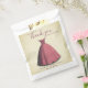 This modern quinceañera thank you favour bags feature a beautiful red dress on a beige background.