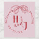 Modern Quirky Hand Drawn Bow PINK & RED Wedding Wine Label