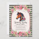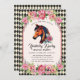 Modern Horse Race Derby Party Invitation with an illustration of a race horse with jockey and striped pattern on the back. All text elements can be changed so this design can be used for other events too: classy equestrian wedding invitation, horse birthday party, derby watch party, horse barn opening and more. Background, color of the illustration and text colors can be changed using the design tool!