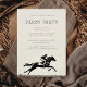 Modern Horse Race Derby Party Invitation with a Vintage style photograph of a race horse and striped pattern on the back. All text elements can be changed so this design can be used for other events too: classy equestrian wedding invitation, horse racing birthday party, barn opening and more. Background and text colours can be changed using the design tool!