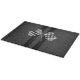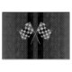 A chequered racing flags applique rendered as a chrome like applique on a carbon fibre style design print. The carbon fibre and black stripes look suits automotive, modern, and industrial tastes and the 3D simulation of the flags makes for a dynamic looking design.