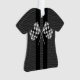 A chequered racing flags applique rendered as a chrome like applique on a carbon fibre style design print. The carbon fibre and black stripes look suits automotive, modern, and industrial tastes and the 3D simulation of the flags makes for a dynamic looking design.