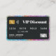Elevate your salon's marketing with this modern and stylish discount card! Its sleek credit card design features a vibrant rainbow glitter accent, making it both professional and memorable. Perfect for offering exclusive discounts and promotions. Customise the design with your salon's details and offer information.