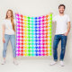 This modern colourful fleece blanket features a white houndstooth geometric pattern over a rainbow gradient background.