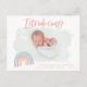 Modern rainbow pink girly introducing photo birth announcement postcard