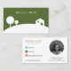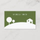 A modern real estate agent business card, striking the perfect balance between simplicity and elegance, appealing to a broad audience. The card features a minimal scene of white trees and a house on a hill. The reverse side has icons for all your contact information. Replace with your own photo.