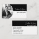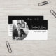 A modern business card for a realtor or real estate agent. Add your own photograph in the rounded frame and create a professional business card with a blackl and white background and contemporary fonts.