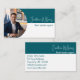 A modern business card for a realtor or real estate agent. Add your own photograph in the rounded frame and create a professional business card with a dark teal and white background and contemporary fonts.