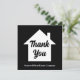 Chic real estate company thank you cards in modern black and white. Customise with your realty business under the simple house for a home buying client or professional realtor.