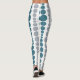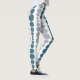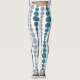 These leggings have a mid-century modern design of teal and grey rounded rectangles in increasing and decreasing size running vertically on a field of white.