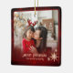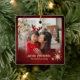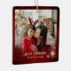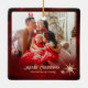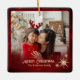 Modern Red 2 Photos Family Christmas Ceramic Ornament