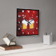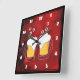 A square clock with a modern abstract pattern. Red and black colors swirl, mix and mingle together. Creative, artistic and unique with a dark, mysterious flair. A pair of foamy frothy beer glasses clink together in celebration.