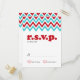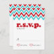 Modern Red and Aqua Chevron & Lovebirds RSVP Invitation Postcard