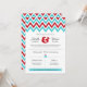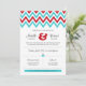 Modern Red and Aqua Chevron & Lovebirds Wedding Invitation