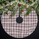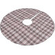 This Christmas tree skirt features a modern tartan (plaid) pattern in black, white, and red.