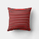 This modern pillow features red and black stripes with thin white lines between them.