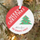 Modern Red and Green Christmas Tree Family Holiday Ornament. Fun Christmas ornament with Merry Christmas typography, family name and wish - personalise with your name. Festive colours in green, red and white. Simple Christmas tree. Great holiday Christmas ornament for a Christmas tree or a gift for a family and friends.