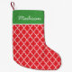 Modern Red and Green Quatrefoil Monogram Small Christmas Stocking