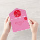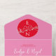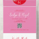 A sleek and modern wedding invitation that combines simplicity with vibrant red and pink hues. This minimalist design features a unique monogram, hand-drawn lovebirds, and chic handwritten script. The back showcases a custom photo of the couple, and a convenient QR code allows easy access to wedding details, RSVPs, and the option to upload your own photo. Perfect for couples who want a contemporary and personalised touch.