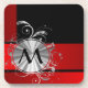 Modern red and silver monogram coaster