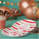Modern Red and Tan Merry Christmas Striped Paper Plate