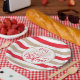 Jazz up your holiday table with these red and tan Merry Chritmas paper plates. So fun!