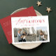 Modern Red and White Family Photo Christmas Holiday Postcard