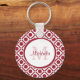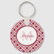 Make a splash with this modern red and white geometric pattern monogram basic keychain with trendy tiled circles. Personalise this bold graphic circle design by adding the name and monogrammed initial of the fashionable young woman.