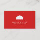 This modern real estate business card features a white house graphic on the front and a faint red house silhouette on the back all against a red background. It's ideal for real estate agents, realtors, real estate brokers, estate agents, etc.