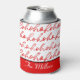 Modern Red and white Text Christmas Pattern Can Cooler
