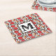 Modern Red Apple Pattern Monogram Square Paper Coaster