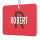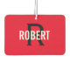 Modern red black monogram name air freshener.