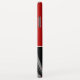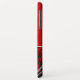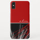 Modern phone case features a stylish organic abstract design in a red, black and white colour palette. The top half of the case features a simple plain red background with monogram initials presented in a white modern script. The bottom half of the case is designed to feature the white and grey ribbons with red accents on a black background.