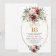 Modern Red Burgundy Gold Floral Sweet 16 Invite