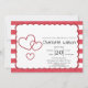 This baby shower invitation features a red chalk stripe background and triple red hearts. You can personalize the text and change the color by clicking the "Personalize" button. Have a lovely day, my friend!