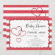 Modern Red Chalk Stripes Triple Hearts Baby Shower Invitation
