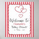 Modern Red Chalk Stripes Triple Hearts Baby Shower Poster