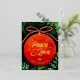Modern Red Christmas Ball Ornament Botanical Foil Holiday Postcard