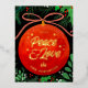 Design is composed of a red Christmas ornament on a dark background. Add your family's name, year, and custom message.