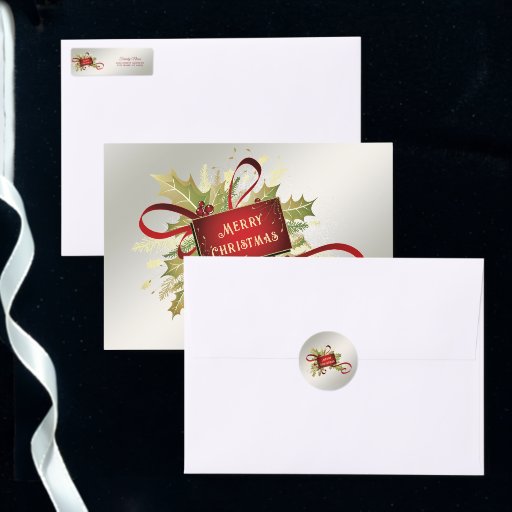 Beautiful Modern Red Christmas Holiday Water Bottle Label