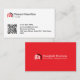 The front side includes space for your name, position, phone number, email, social media handle, and full address—plus a scannable QR code for quick access to your portfolio, website, or contact details. On the back, a striking building-inspired logo and tagline reinforce your brand identity with confidence.
