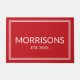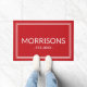 Modern Elegant red and white custom name text date double thin border modern doormat