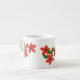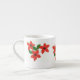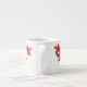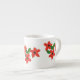 A stylish white Espresso mug with clusters of bright red flowers from a handpainted paper collage by Judy Adamson. Other products, greeting cards and gifts, such as other mugs, a jugs and a tea pot with this design can be found in my store.