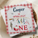 Modern Red Gingham Ofishally One 1st Birthday Napkin