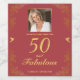 Modern Red Gold 50 Fabulous Birthday Photo Wine Label